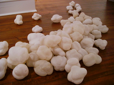 Little White Lies attempts to show how lies can proliferate in our lives.  Each one in and of itself is insignificant, but taken together they create a mass of lies.  This piece speaks to the fact that lies exist in everyone’s life.  Even those people that pride themselves on their honesty will find a shocking number of lies in their life if they include all manner of lies – posturing, putting a spin on things, insincere compliments, saying things that are socially acceptable that they don’t really believe – even coloring our hair or cosmetic surgery can be counted as a kind of lie.